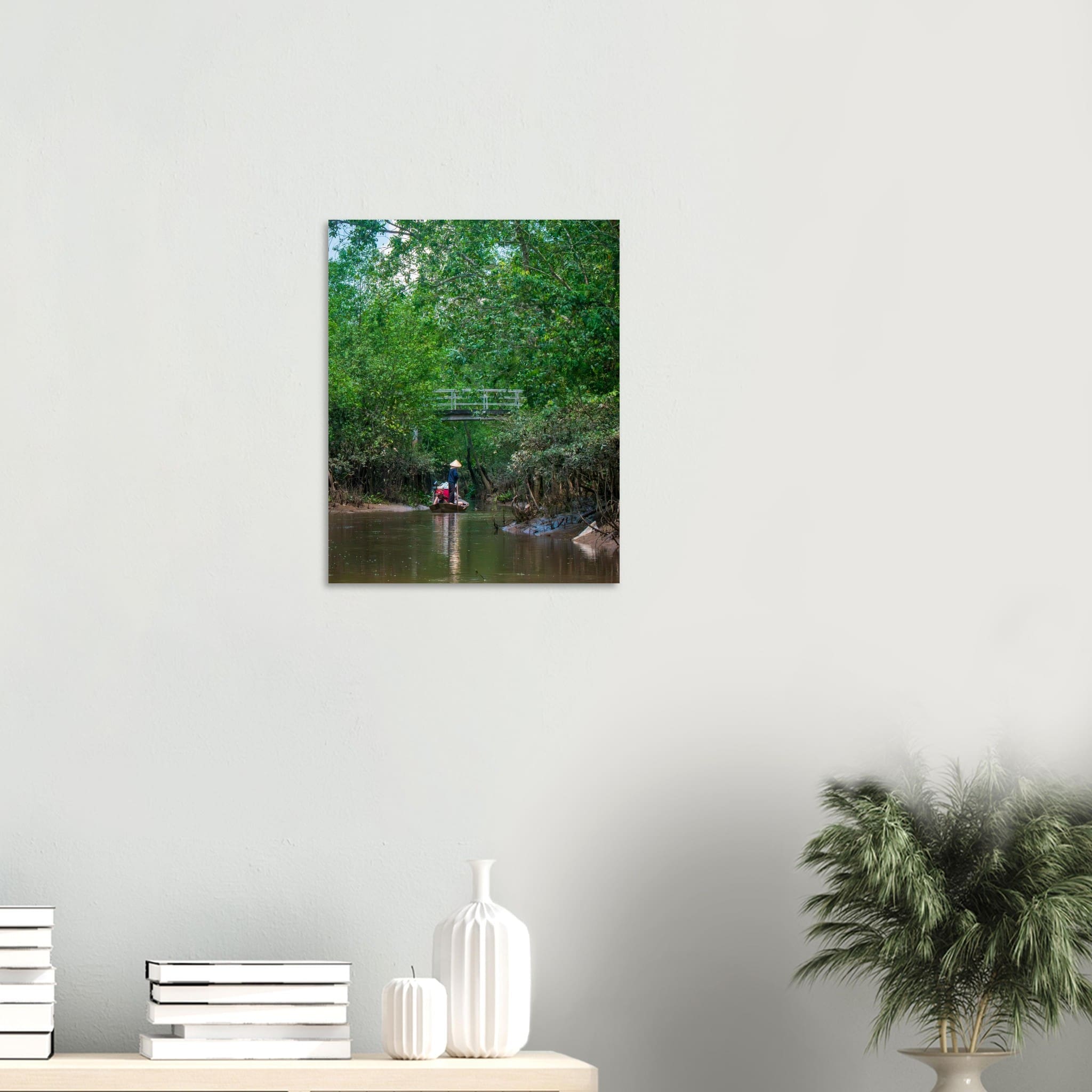 In the lush waterways of southern Vietnam, a lone boat glides quietly beneath a canopy of mangroves. Framed by dense forest and a simple footbridge, this photo captures a timeless mode of life in the Mekong Delta — slow, purposeful, and deeply connected to nature.